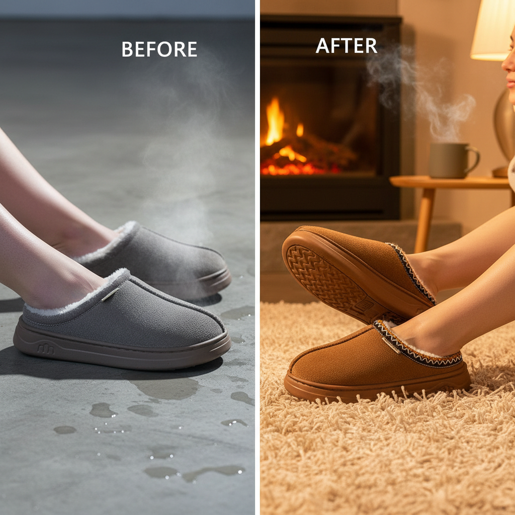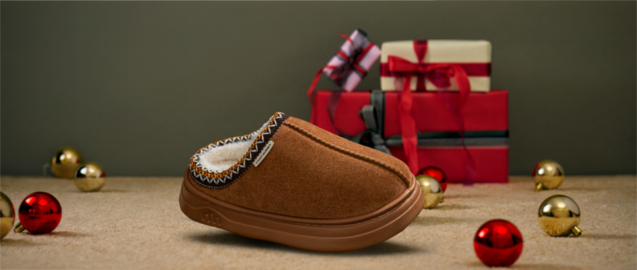 Anti-slip outdoor sole plus indoor comfort. Fuzzy fur warmth that lasts all winter long.